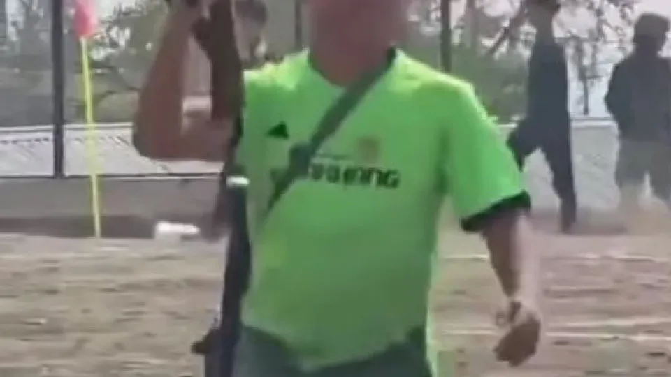 #WATCH | A viral video has emerged from Kangpokpi, #Manipur, showing a man wielding an AK rifle while playing football, raising serious concerns over gun culture and public safety.