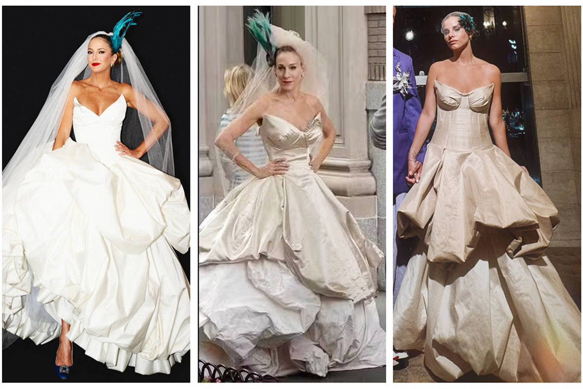 O vestido de noiva usado por Carrie em seu casamento com Mr.Big, no filme que deu sequência à série que marcou a juventude millenial, inspirou a escolha da apresentadora Ticiane Pinheiro, 48, e da influenciadora Shantal Verdelho, 36.
