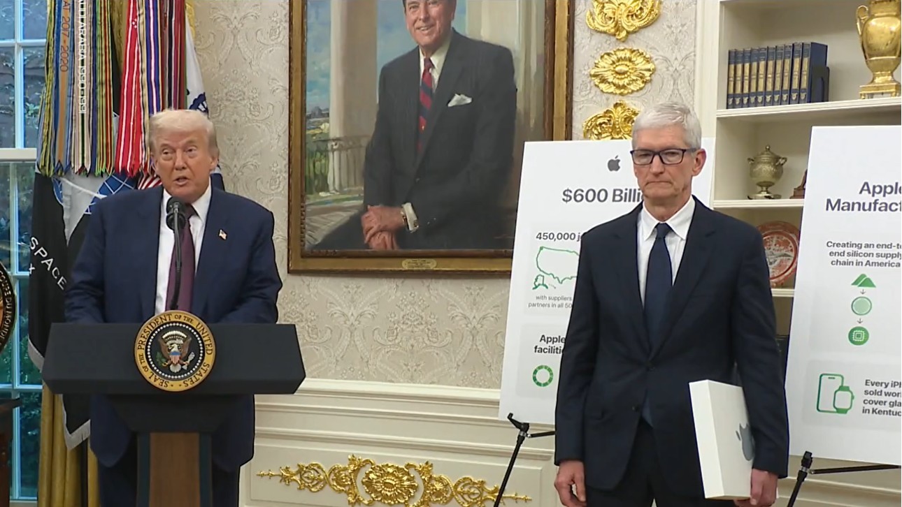 A Apple anunciou um novo investimento de US$ 100 bilhões para fabricar componentes nos Estados Unidos nos próximos quatro anos. A novidade foi divulgada, nesta quarta-feira (6), pelo presidente dos EUA, Donald Trump, com o chefão da big tech, Tim Cook, em uma live transmitida pela Casa Branca.