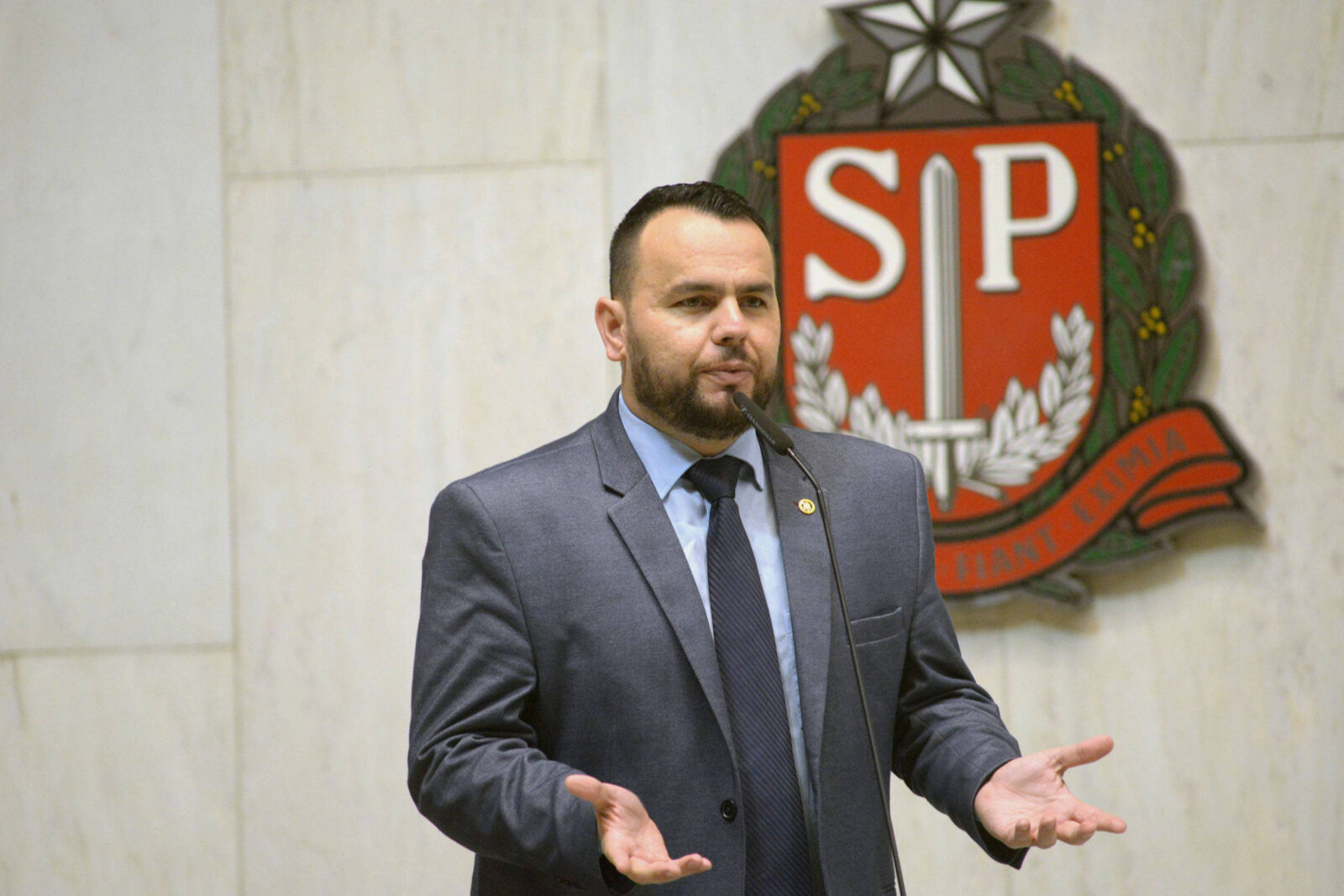 O deputado estadual Gil Diniz (PL) tenta colher assinaturas dos seus colegas para formar a Frente Parlamentar pela Anistia aos Presos Políticos do 8 de Janeiro na Alesp (Assembleia Legislativa de SP).
