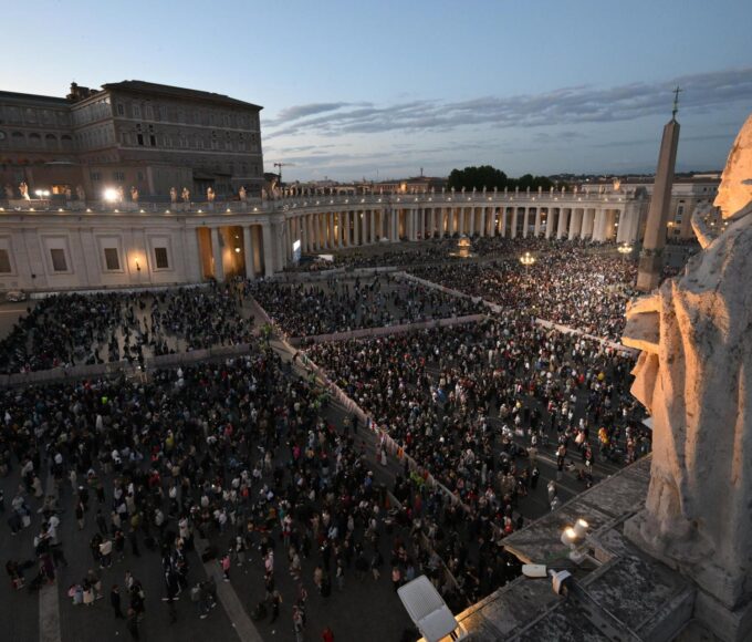 Milhares de fiéis se concentraram na Praça de São Pedro à espera...