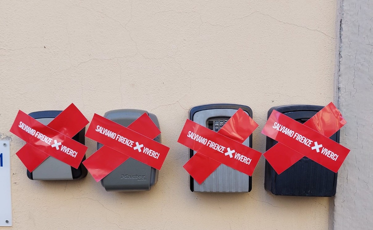 As caixas de chave se tornaram um símbolo do turismo na região e foram alvo de protestos recentes de moradores, que colaram nelas adesivos em formato de X vermelhos com a frase “Salviamo Firenze X Viverci” (salvaremos Florença para vivermos nela, na tradução livre). Confira na imagem acima.