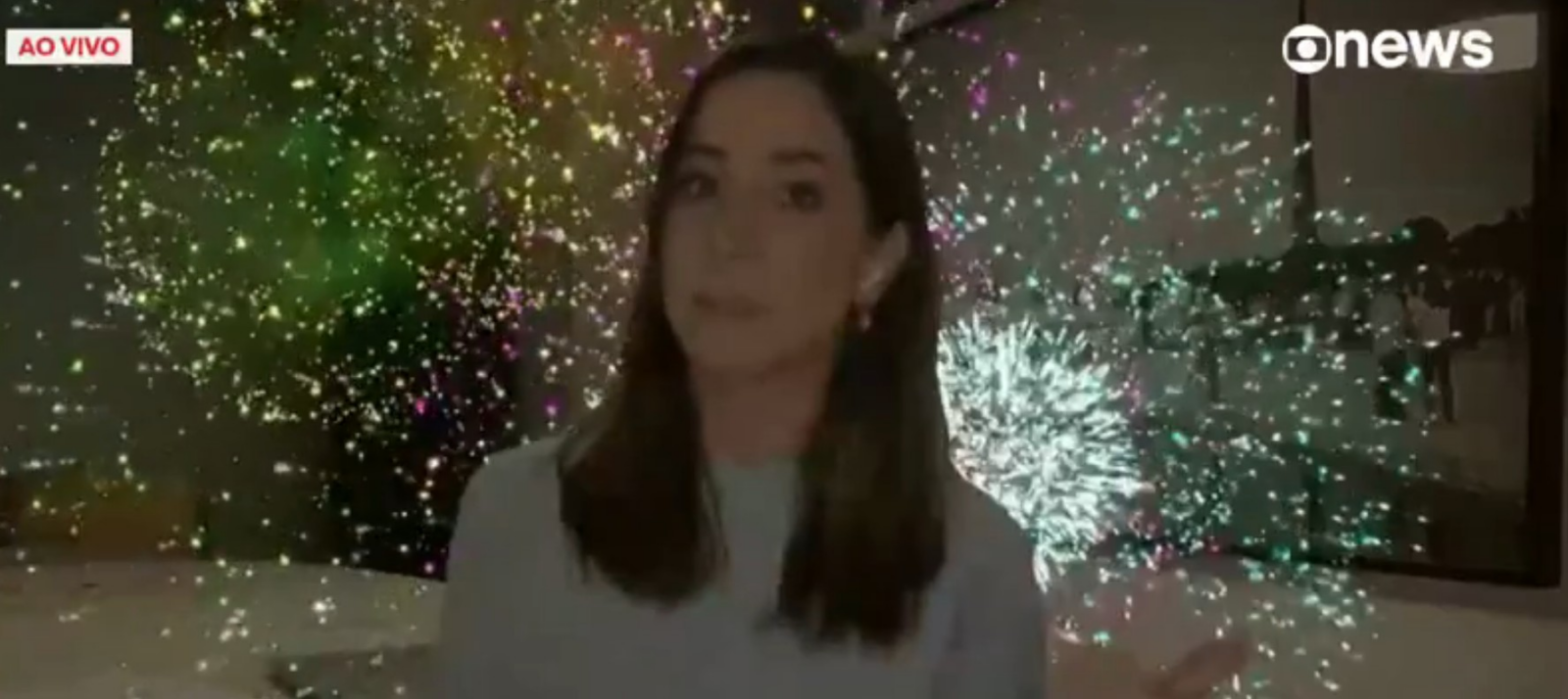 Durante a apresentação do Especial de Domingo da GloboNews, Julia Dualibi entrou ao vivo e ativou acidentalmente uma animação de fogos de artifício (veja no vídeo acima). A jornalista caiu no riso e disse: