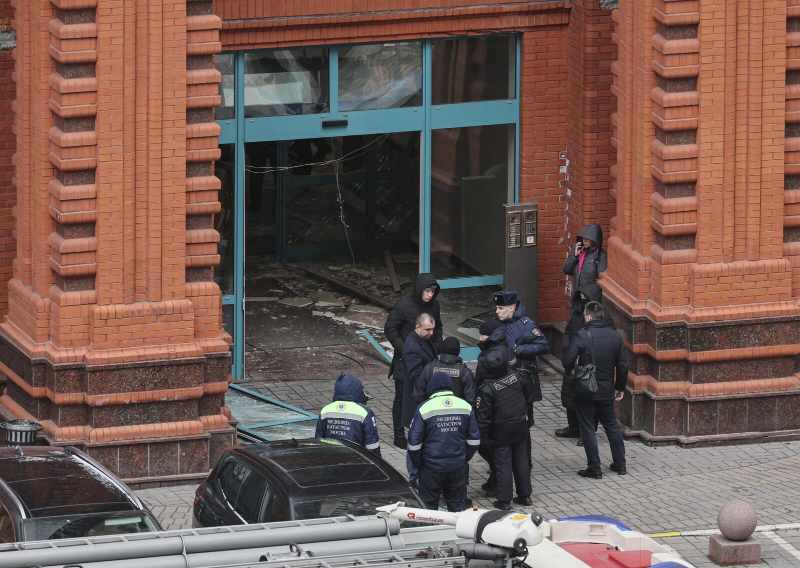 O canal russo Baza, no Telegram, divulgou imagens dos danos causados pela explosão na entrada do prédio e jornalistas da Reuters descreveram vidraças quebradas e a presença de helicópteros retirando feridos, enquanto a polícia isolava a área.