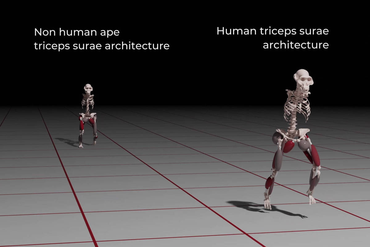 Quando músculos semelhantes aos tornozelos humanos foram adicionados à estrutura de Lucy, a quantidade de energia que ela gastava era comparável à de outros animais de estatura semelhante. Mas, se fossem adicionados músculos semelhantes aos tornozelos de primatas, ela teria gasto três vezes mais energia correndo do que um humano moderno.