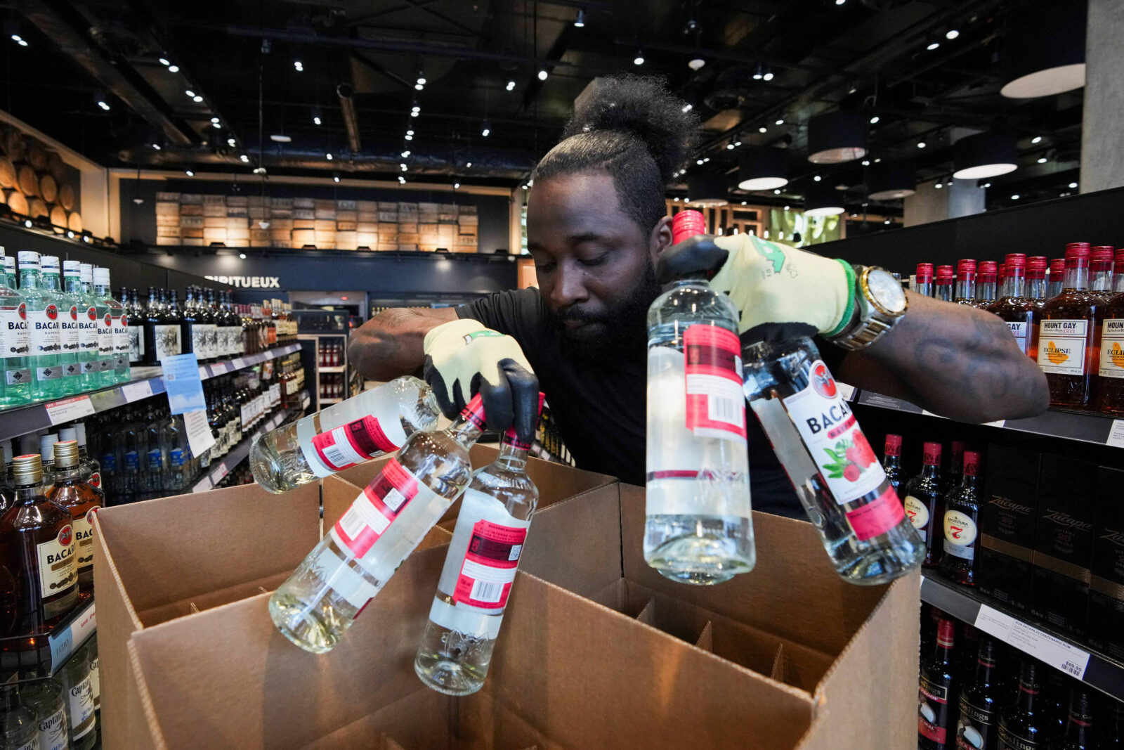 Na terça-feira (4), essas tarifas entraram brevemente em vigor, e bebidas e vinhos americanos foram embalados e escondidos em grande parte do Canadá. As transmissões de televisão estavam cheias de imagens de funcionários embalando garrafas de vidro e deixando prateleiras vazias para trás.