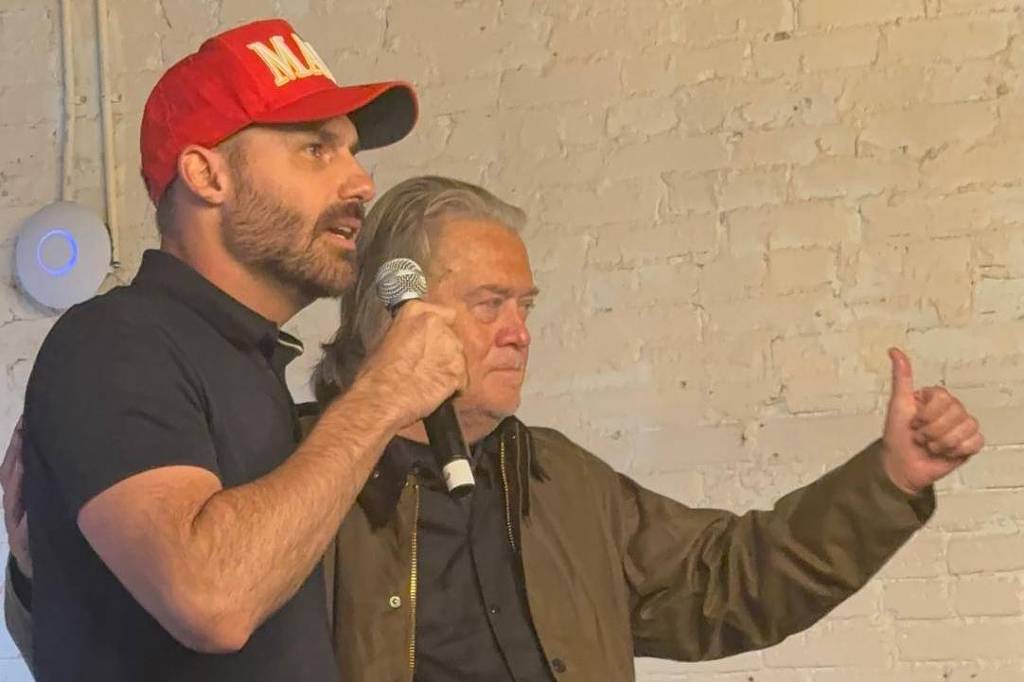 Bannon organizou um almoço neste domingo e convidou integrantes da comitiva de parlamentares brasileiros que está nos Estados Unidos para acompanhar a cerimônia de posse de Trump, nesta segunda (20). Eduardo é o principal organizador dessa delegação.