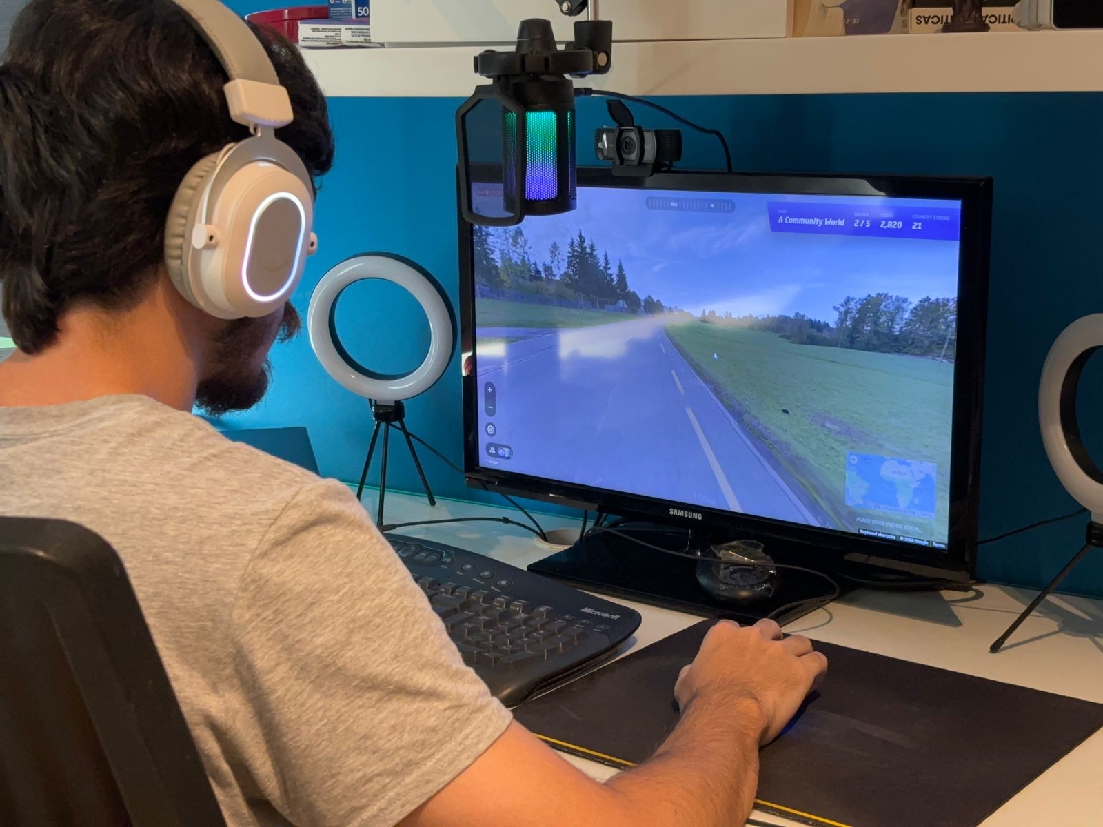 João Paschoal jogando GeoGuessr em casa
