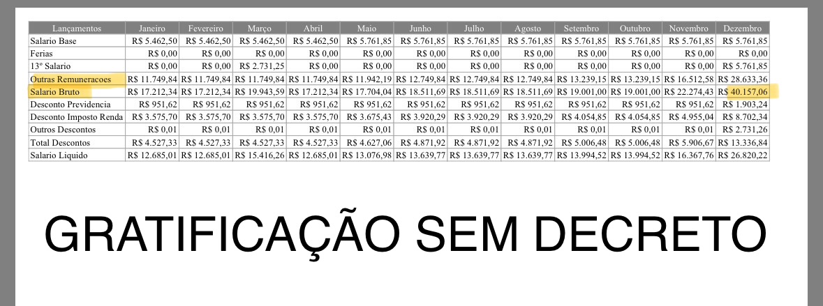 Informações oficiais mostram que servidores do setor de tributos e alguns lotados na Secretaria da Fazenda vêm recebendo gratificações de função de forma contínua, com impacto direto na remuneração mensal. Em pelo menos um dos casos, o salário bruto registrado em dezembro passou a superar a remuneração do secretário da pasta, criando uma inversão hierárquica que chama atenção, embora esse não seja o ponto central da questão.