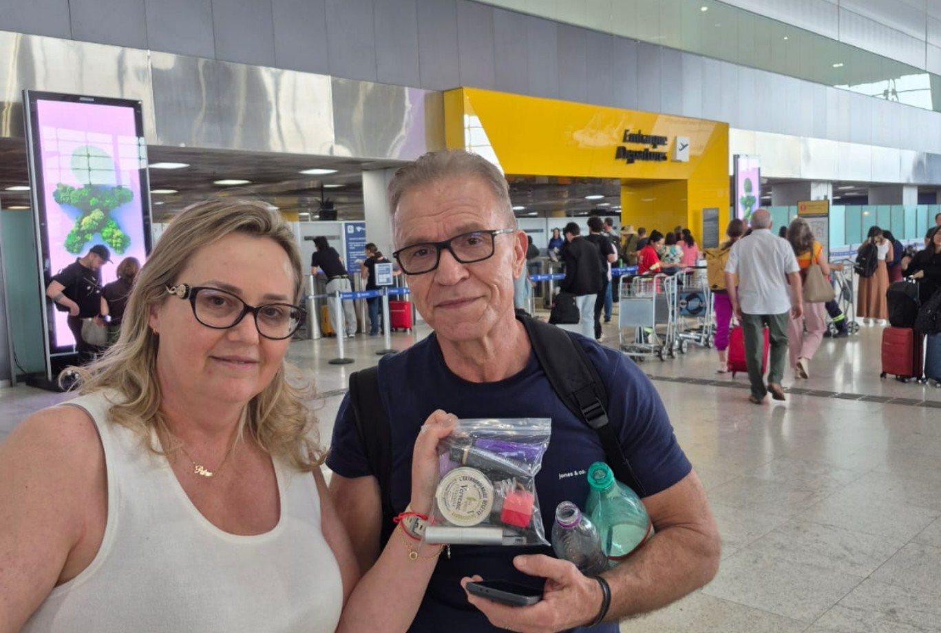 Na última quinta-feira (28), o casal Nelson, de 61 anos, e Patrícia Fonseca, 53, estava em Guarulhos para viajar até Bruxelas, na Bélgica, a fim de visitar o filho.