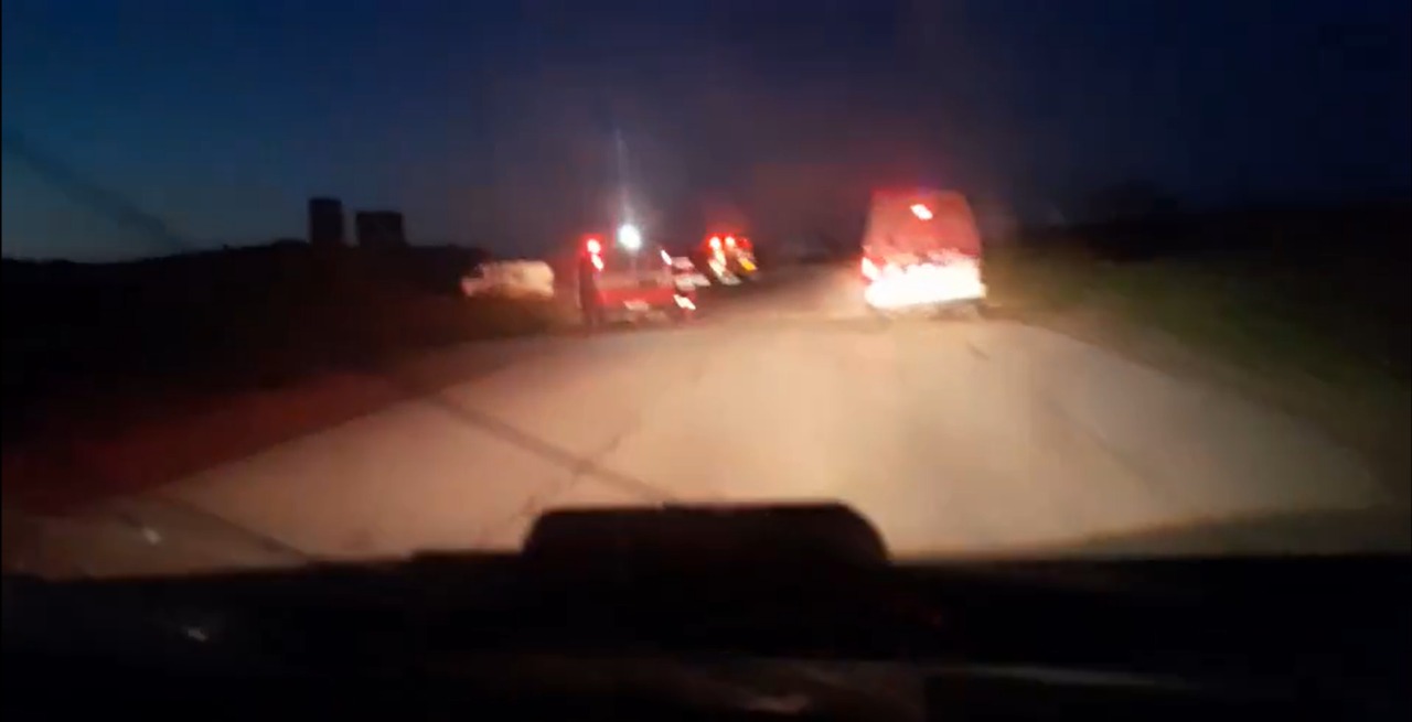 Imagem de vídeo divulgado pela Sociedade do Crescente Vermelho Palestino (PRCS) que mostra alertas ligado em comboio de ambulâncias. (Foto: Sociedade do Crescente Vermelho Palestino (PRCS))