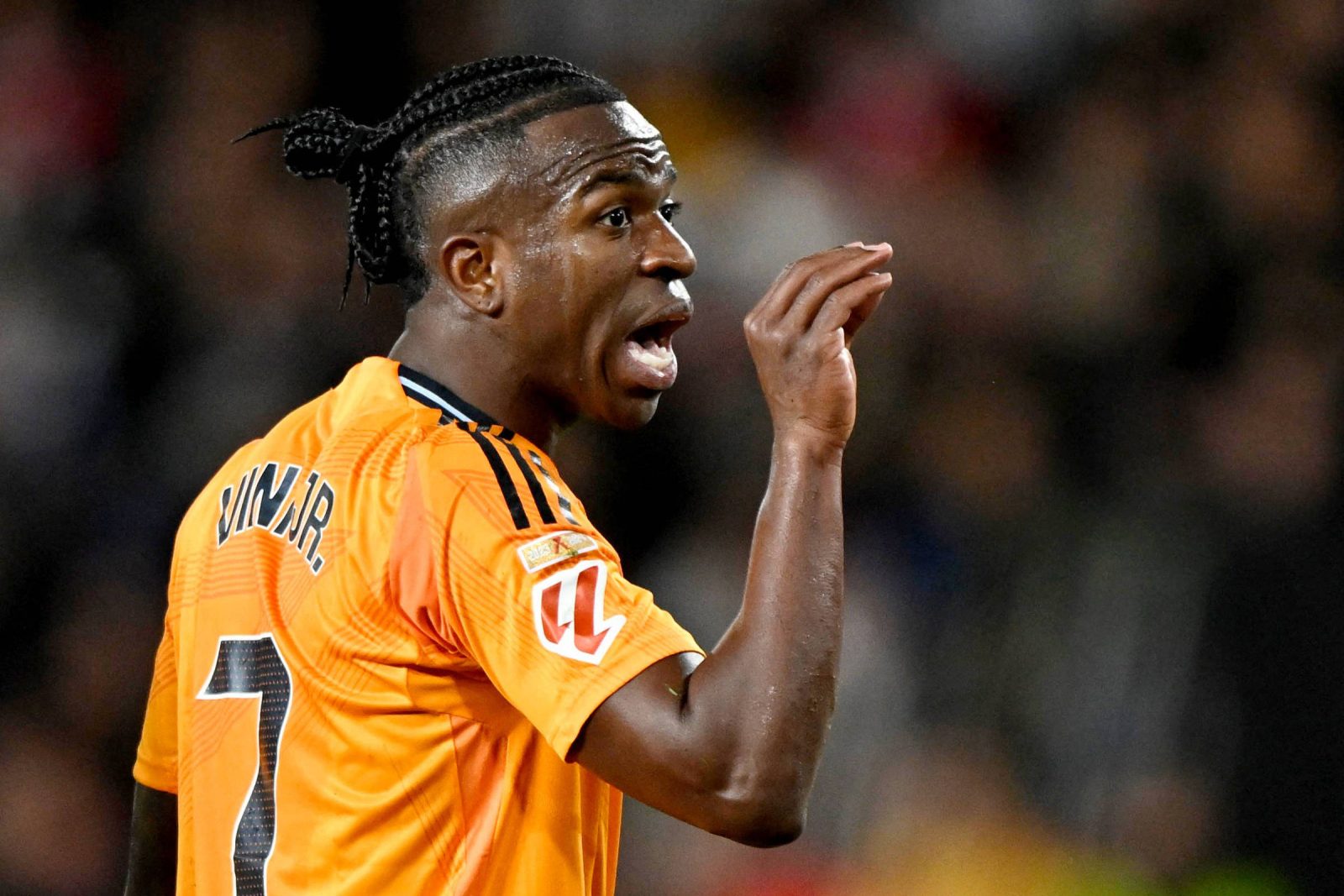 Vídeos que circulam na internet mostram os fãs do time da casa gritando “mono” (macaco em espanhol) na direção do brasileiro, que foi provocado ao longo de todo o duelo. Além dos xingamentos racistas, sempre que o camisa 7 do Real Madrid pegava a bola, ele era vaiado. A torcida também comemorava cada desarme de algum defensor em lances com o atacante.